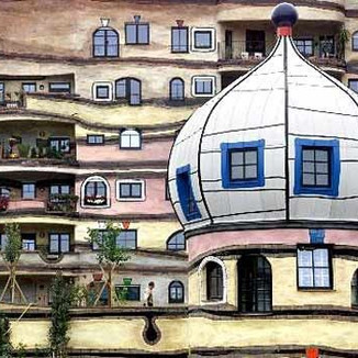 Hundertwasser is known for his bold colored paintings and organic architecture